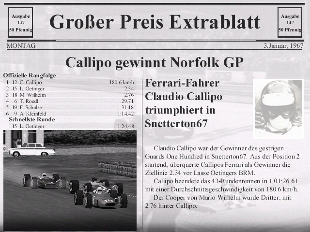 Snetterton 67 PL 13.3., Zeitung